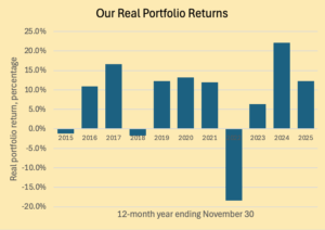 == 12.2% real portfolio return ==