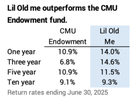 I scan this report that reports on the performance of more than 650 university endowments for the fiscal year ending June 30, 2024. I think the CMU endowment performs better than average. Private equity and hedge funds do not look like paths to riches.